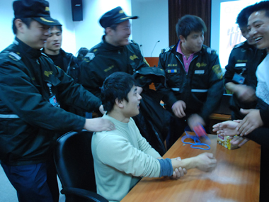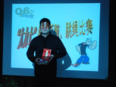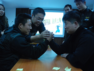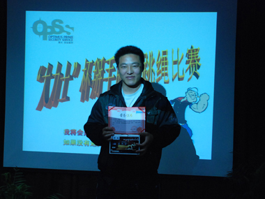 在亢奮的音樂聲中,參賽的隊員陸續(xù)到達比賽現(xiàn)場,當(dāng)然各位“大力士”還有他們各自的粉絲團。人差不多到齊后,大家欣賞了一部喜劇片《小狗也瘋狂》,之后,由李總宣布比賽正式開始。