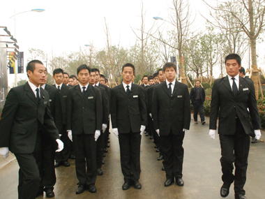 11月29日60余名擎天隊(duì)員脫下制服換上西裝,整裝待發(fā)。10點(diǎn)準(zhǔn)時到達(dá)活動目的地---“華麗家族-太上湖”項(xiàng)目地。隊(duì)員下車后排成了整齊的方隊(duì),統(tǒng)一的服裝,整齊的步伐,帥氣的面孔,響亮的口號吸引住了所有人的目光。