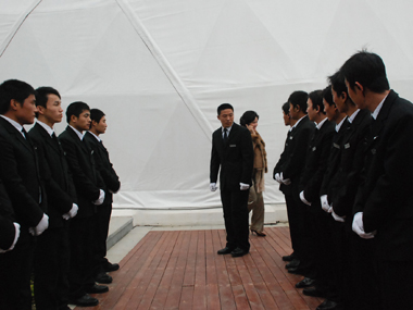 盡管當(dāng)天溫度低至8度,但我們隊(duì)員穿著襯衫、西服從9點(diǎn)開始一直堅守崗位至19點(diǎn)多,沒有半句怨言,在此次活動中我們隊(duì)員表現(xiàn)出了良好的專業(yè)素養(yǎng),活動結(jié)束后客戶給我們發(fā)來了短信——“今天是你們的功勞,非常感謝!”